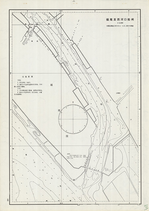 中共海軍司令部航海保證部(年代不詳)。[地圖名稱:福尾至西河口船閘]。《數位典藏與數位學習聯合目錄》。http://catalog.digitalarchives.tw/item/00/81/62/96.html(2020/07/07瀏覽)。