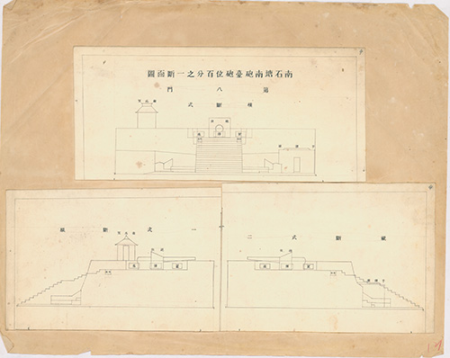 *(年代不詳)。[地圖名稱:南石唐北第八門砲台砲位百分之一斷面圖]。《數位典藏與數位學習聯合目錄》。http://catalog.digitalarchives.tw/item/00/81/62/ea.html(2020/07/07瀏覽)。