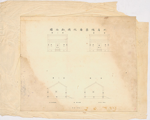 *(年代不詳)。[地圖名稱:北岸總藥庫縱橫斷面圖]。《數位典藏與數位學習聯合目錄》。http://catalog.digitalarchives.tw/item/00/81/62/eb.html(2020/07/07瀏覽)。