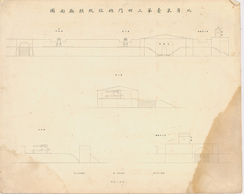 *(年代不詳)。[地圖名稱:北岸東臺第三四門砲位縱橫斷面圖]。《數位典藏與數位學習聯合目錄》。http://catalog.digitalarchives.tw/item/00/81/62/ee.html(2020/07/07瀏覽)。