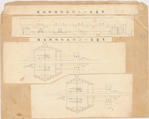 *(年代不詳)。[地圖名稱:焦台第一二門砲位橫斷面圖]。《數位典藏與數位學習聯合目錄》。http://catalog.digitalarchives.tw/item/00/81/62/f8.html(2020/07/07瀏覽)。