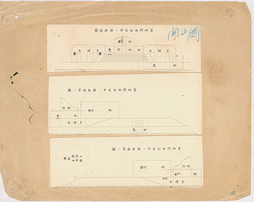 *(年代不詳)。[地圖名稱:圓山關第四門砲位百分一橫斷面圖]。《數位典藏與數位學習聯合目錄》。http://catalog.digitalarchives.tw/item/00/81/63/04.html(2020/07/07瀏覽)。