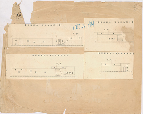 *(年代不詳)。[地圖名稱:圓山關第七八門砲位百分一橫斷面圖]。《數位典藏與數位學習聯合目錄》。http://catalog.digitalarchives.tw/item/00/81/63/06.html(2020/07/07瀏覽)。