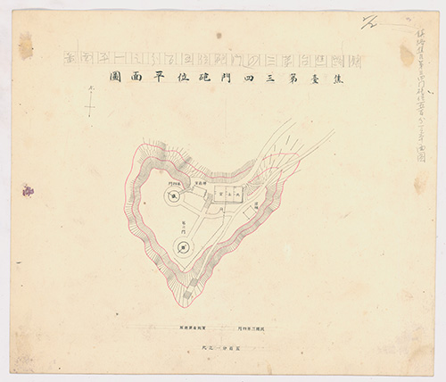 *(年代不詳)。[地圖名稱:焦台第三四門砲位平面圖]。《數位典藏與數位學習聯合目錄》。http://catalog.digitalarchives.tw/item/00/81/63/27.html(2020/07/07瀏覽)。