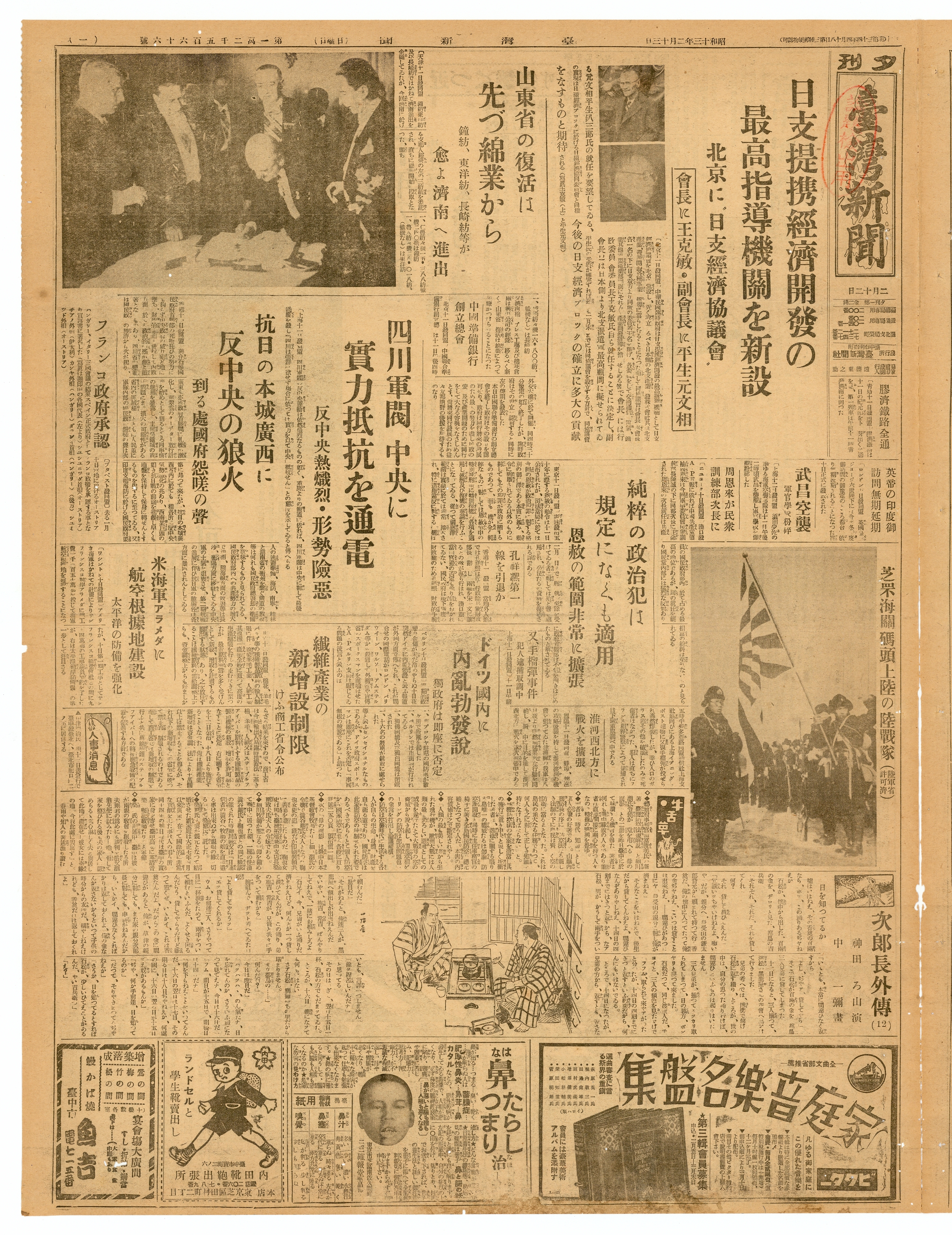 正題名:臺灣新聞第12566號(1938-02-13)