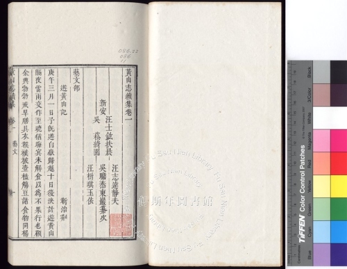 汪士鈜(清) 纂次(民國二十四年)。[主要題名:黃山志續集 八卷, 附圖一卷]。《數位典藏與數位學習聯合目錄》。http://catalog.digitalarchives.tw/item/00/85/b2/75.html(2026/03/30瀏覽)。