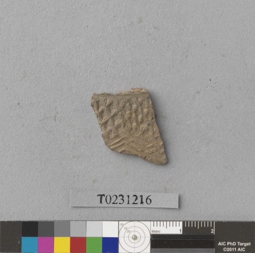 作者不詳(鐵器時代)。[遺物:幾何印紋夾砂陶腹片]。《數位典藏與數位學習聯合目錄》。http://catalog.digitalarchives.tw/item/00/85/b2/94.html(2026/04/17瀏覽)。