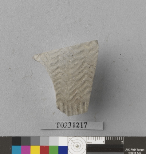 作者不詳(鐵器時代)。[遺物:幾何印紋夾砂陶腹片]。《數位典藏與數位學習聯合目錄》。http://catalog.digitalarchives.tw/item/00/85/b2/95.html(2026/04/17瀏覽)。