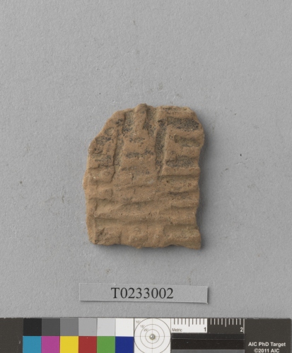 作者不詳(鐵器時代)。[遺物:編織印紋夾砂陶腹片]。《數位典藏與數位學習聯合目錄》。http://catalog.digitalarchives.tw/item/00/85/b3/05.html(2026/04/17瀏覽)。