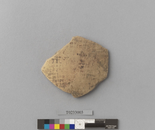 作者不詳(鐵器時代)。[遺物:方格印紋夾砂陶腹片]。《數位典藏與數位學習聯合目錄》。http://catalog.digitalarchives.tw/item/00/85/b3/06.html(2026/04/17瀏覽)。