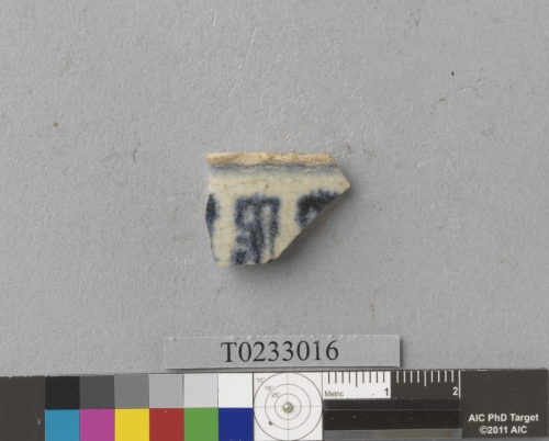 作者不詳(歷史時期)。[遺物:壽字紋青花瓷碗腹片]。《數位典藏與數位學習聯合目錄》。http://catalog.digitalarchives.tw/item/00/85/b3/13.html(2026/04/17瀏覽)。