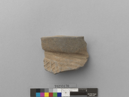 作者不詳(鐵器時代)。[遺物:方格印紋夾砂陶罐口緣]。《數位典藏與數位學習聯合目錄》。http://catalog.digitalarchives.tw/item/00/85/b3/ad.html(2026/04/17瀏覽)。