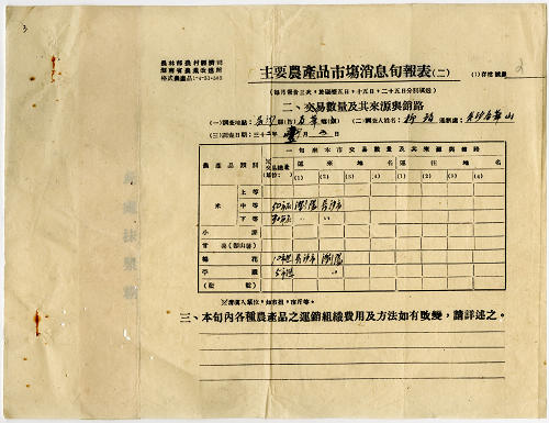 作者不詳(1942-04)。[冊名:31至32年湘主要農產品市場消息旬報表]。《數位典藏與數位學習聯合目錄》。http://catalog.digitalarchives.tw/item/00/85/b6/99.html(2026/03/31瀏覽)。