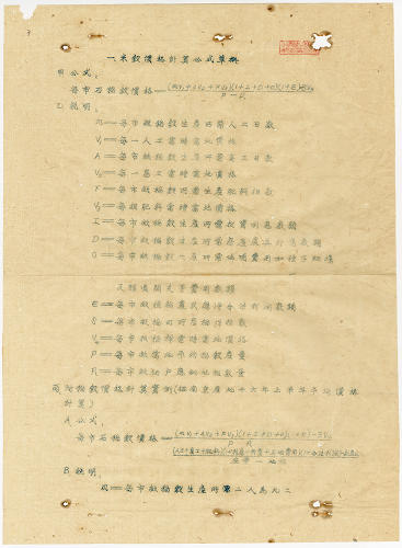 作者不詳(1948-04)。[冊名:各種主要農產品價格計算公式草案]。《數位典藏與數位學習聯合目錄》。http://catalog.digitalarchives.tw/item/00/85/b6/f7.html(2026/03/31瀏覽)。