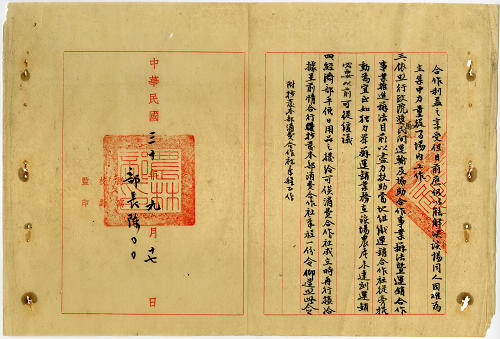 作者不詳(1941-08)。[冊名:令第2國營農場組織合作社]。《數位典藏與數位學習聯合目錄》。http://catalog.digitalarchives.tw/item/00/85/b7/27.html(2026/03/31瀏覽)。