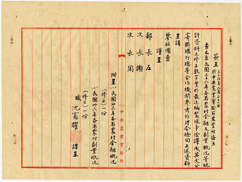 作者不詳(1947-06)。[冊名:36年各省農村金融副業概況資料]。《數位典藏與數位學習聯合目錄》。http://catalog.digitalarchives.tw/item/00/85/b7/2c.html(2026/03/31瀏覽)。
