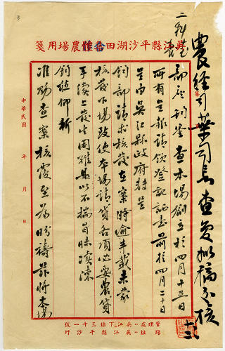 作者不詳(1948-09)。[冊名:37年吳江縣平沙湖田合作農場申請登記]。《數位典藏與數位學習聯合目錄》。http://catalog.digitalarchives.tw/item/00/85/b7/b9.html(2026/03/31瀏覽)。