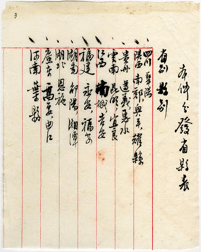 地名:四川省;湖南省;湖北省;雲南省;貴州省;陝西省;河南省;廣東省;福建省;江西省